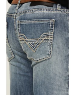 Rock & Roll Denim Men’s Rifle Medium Wash Leather Pocket Stretch Straight Skinny Jeans
