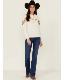 RANK 45 Women’s Logo Southwestern Print Sleeve Trim Pullover Hooded Sweatshirt