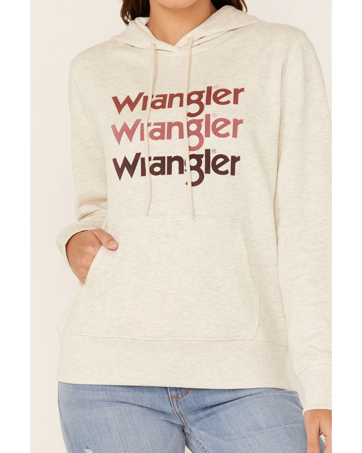 - “Wrangler” multi-colored stacked logo graphic on front